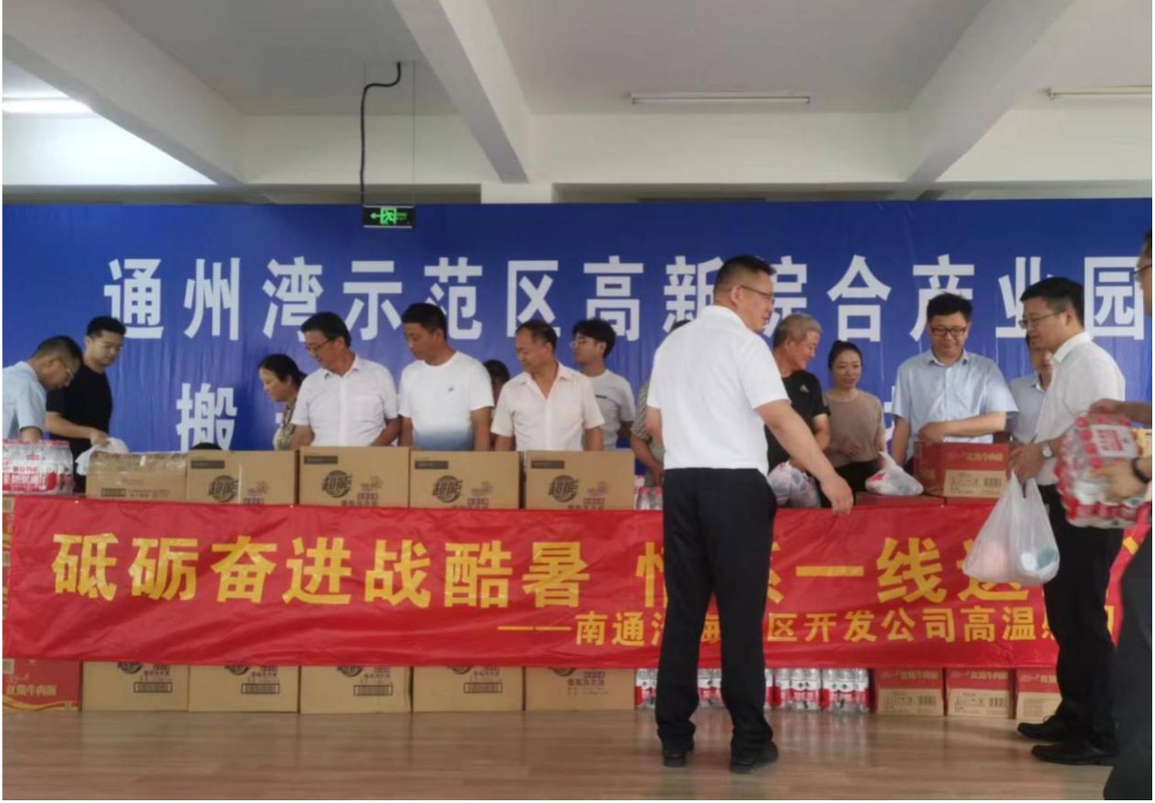 7月15日,南通沿海片區(qū)開發(fā)公司董事長楊宏兵與示范區(qū)管委會副主任錢進、建設(shè)交通局局長吳昊一同看望慰問了搬遷指揮部一線工作人員。